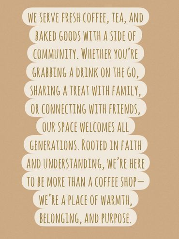 Rooted in Faith and understanding, we're here to be more than a coffee shop-we're a place of warmth, belonging, and purpose.